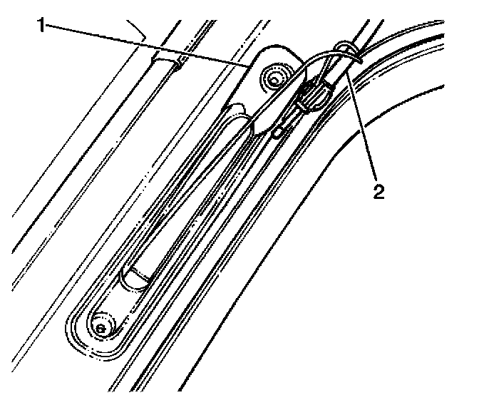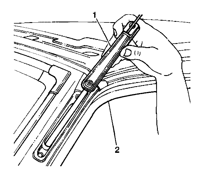 4. Remove the antenna (1) from the vehicle by gently pulling the antenna cable up through the windshield side pillar with the mechanics wire attached.