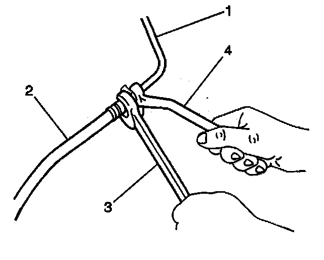 6. Remove the flare nuts from the hose (2) and pipe (1) with 2 wrenches (3,4).