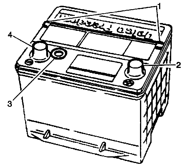 The sealed battery is standard on all models. The battery is completely sealed except for two small vent holes (1) located on the side of the battery. These vent holes allow the small amount of gas produced in the battery to escape.