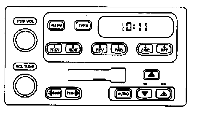 The ignition switch must be in the ACC position or in the ON position in order to operate the radio. If the ignition is in the OFF position, press the RCL/TUNE knob in order to display the time for 5 seconds. If the ignition switch is in the ACC position or in the ON position, and if the radio is off, the time will display. In this instance, all controls except those controls that are required to set the clock will deactivate.