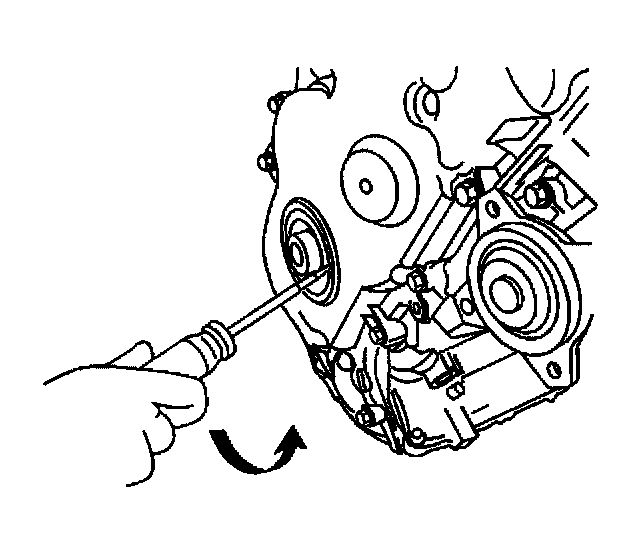 Carefully pry out the crankshaft front oil seal using a screwdriver.