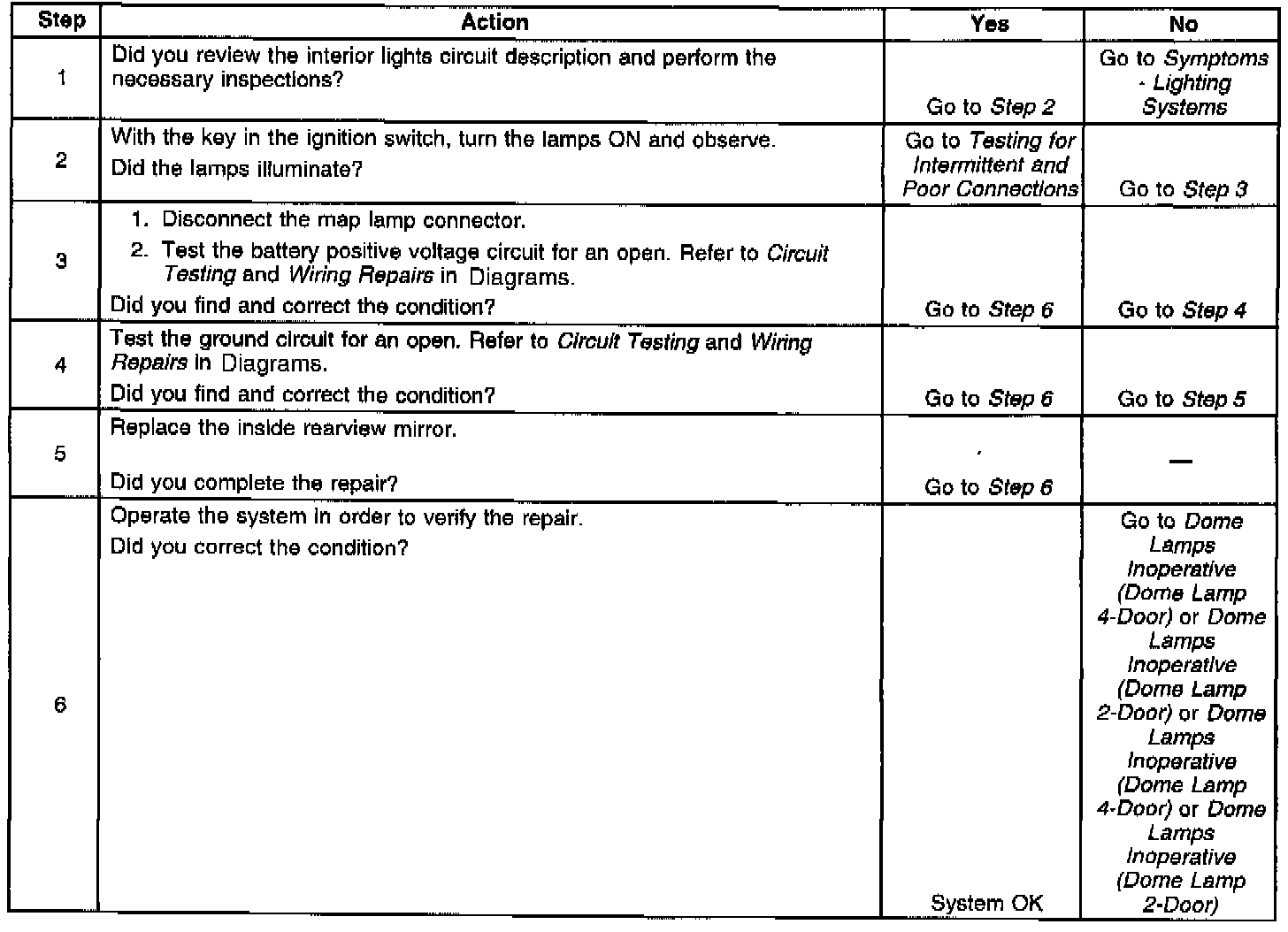 Rearview Mirror Lamp(s) Inoperative - Inside: