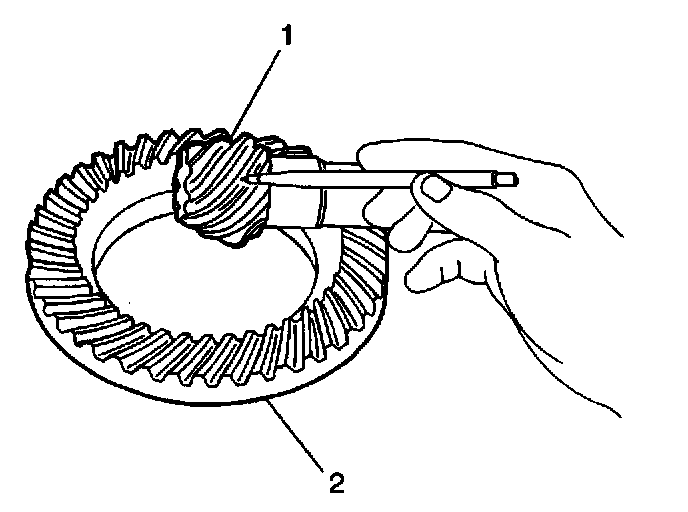 25. Inspect the ring (2) and pinion (1) gears for excessive or unusual wear, cracks, overheating or other damage and replace as necessary.