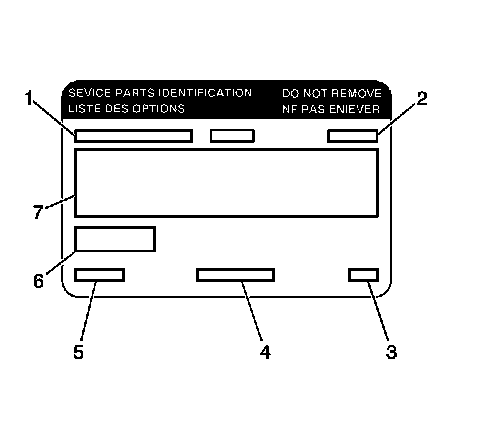 The Service Parts Identification Label aids the service personnel in identifying the parts and options originally installed on the vehicle.