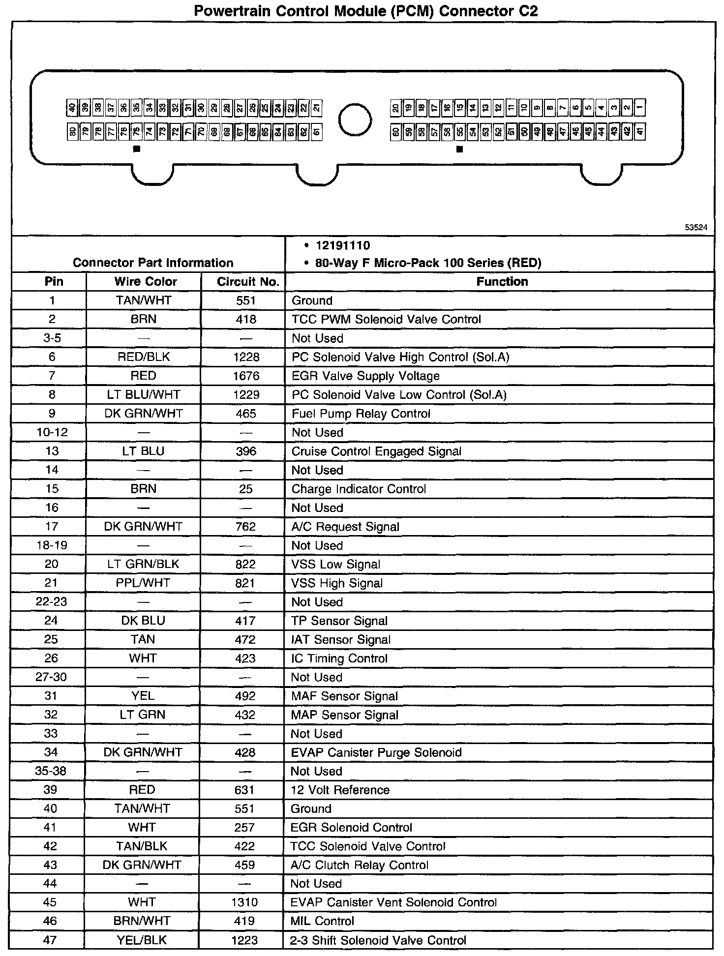 Powertrain Control Module (PCM) Connector C2 (Part 1 Of 2):