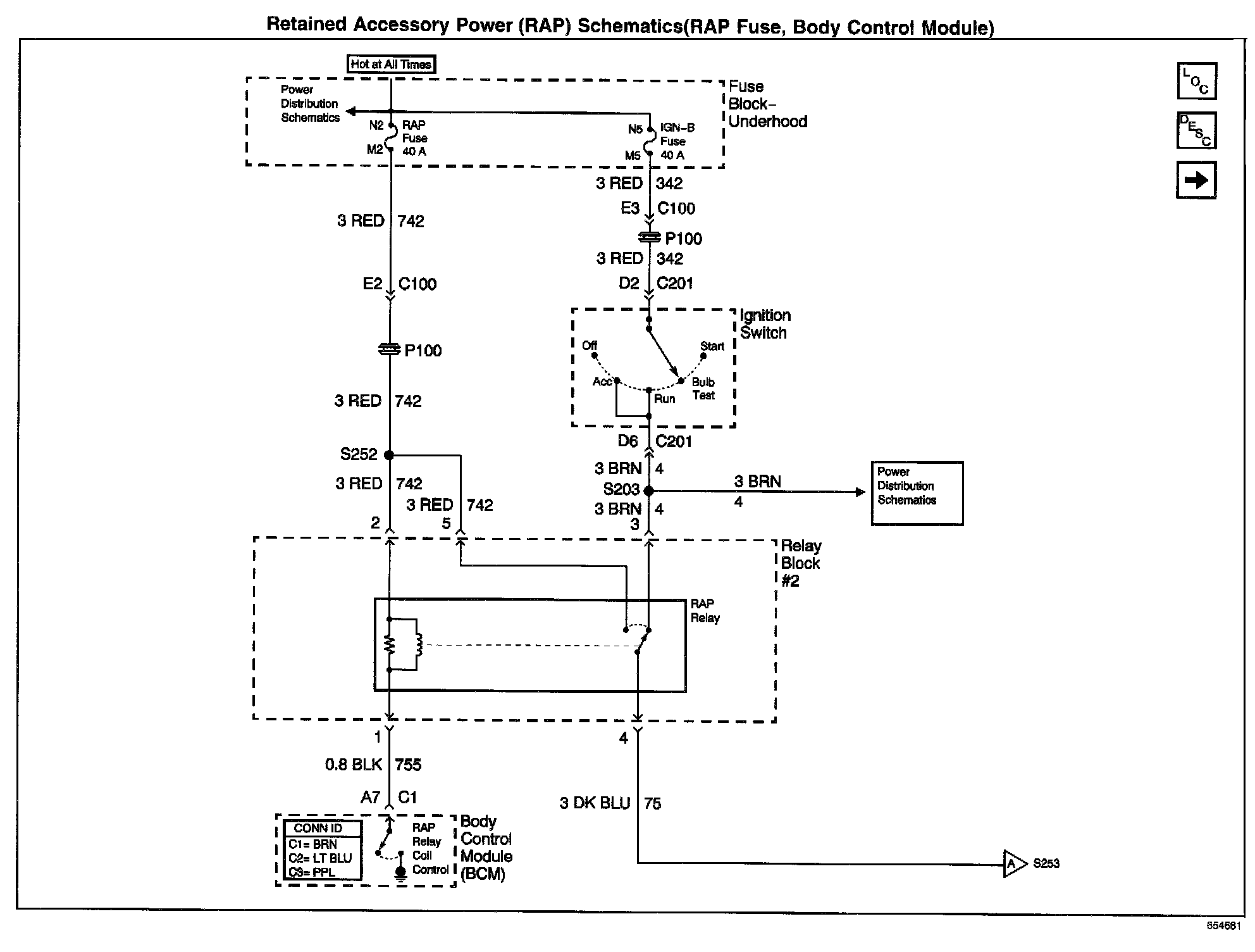 Retained Accessory Power (RAP) Schematics: RAP Fuse, Body Control Module: