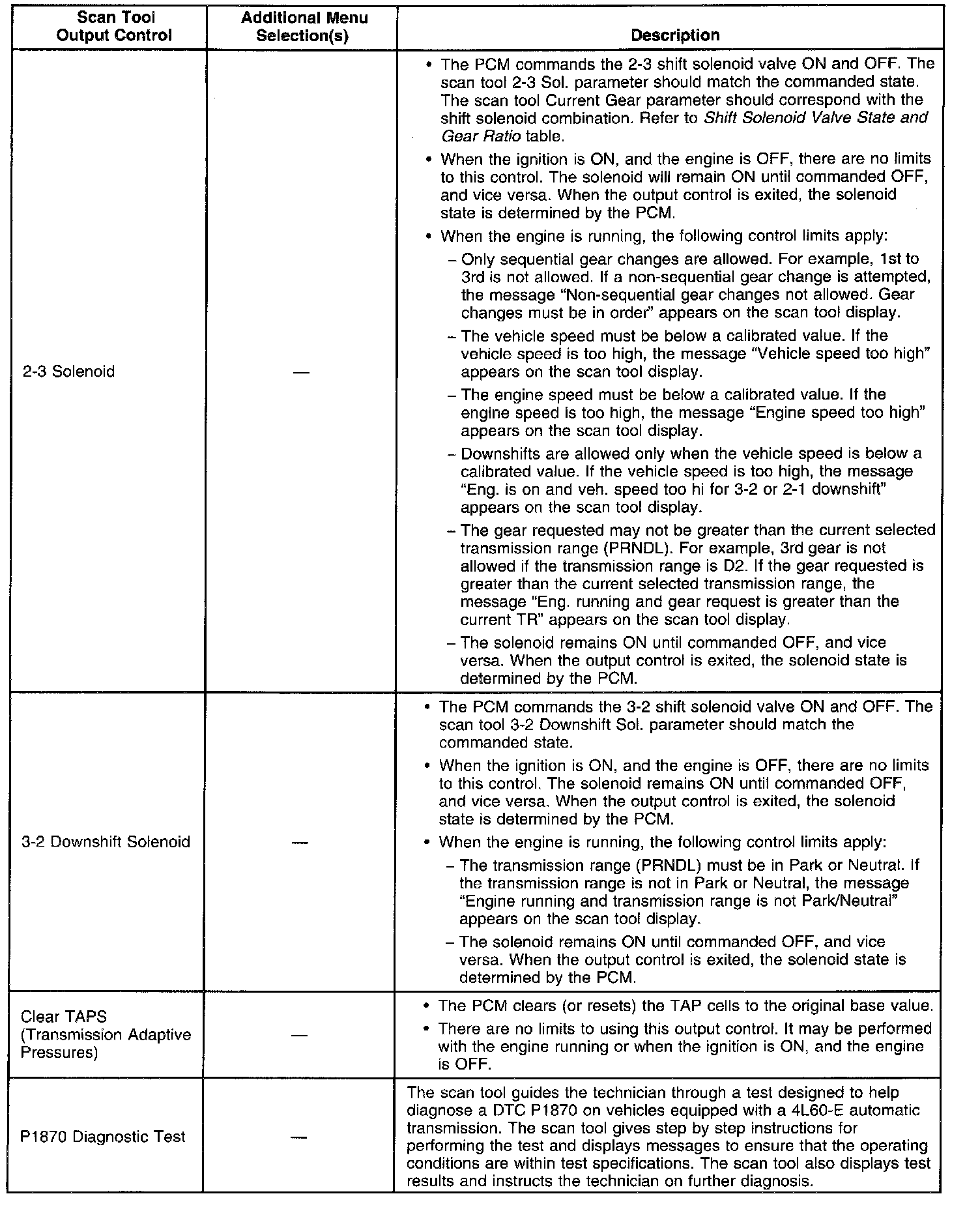 Scan Tool Output Controls