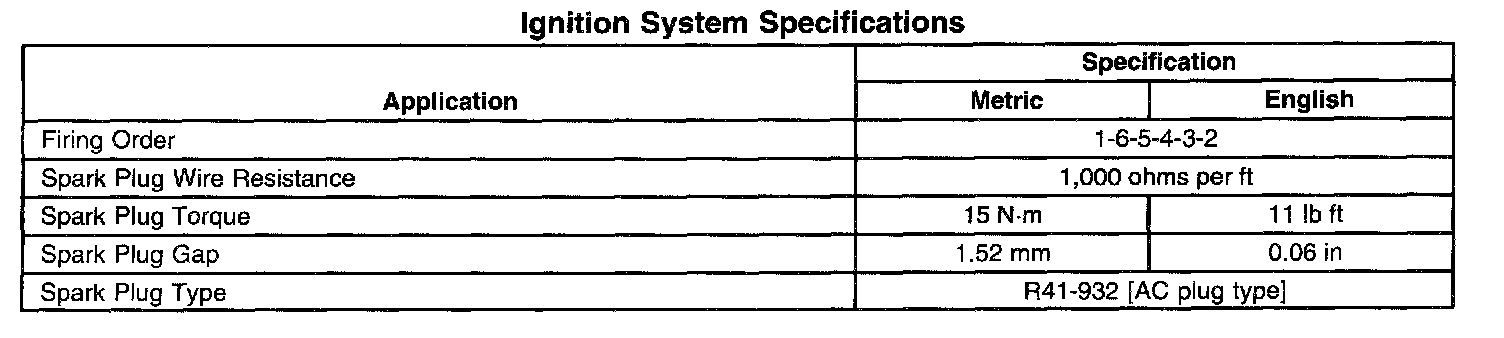 Ignition System Specifications: