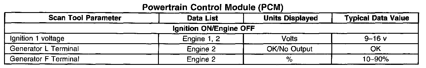 Scan Tool Data List - Powertrain Control Module (PCM)
