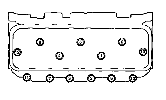 ^ Tighten the short bolts (2, 3, 6, 7, 10, and 11) on the final pass in sequence to 55°.