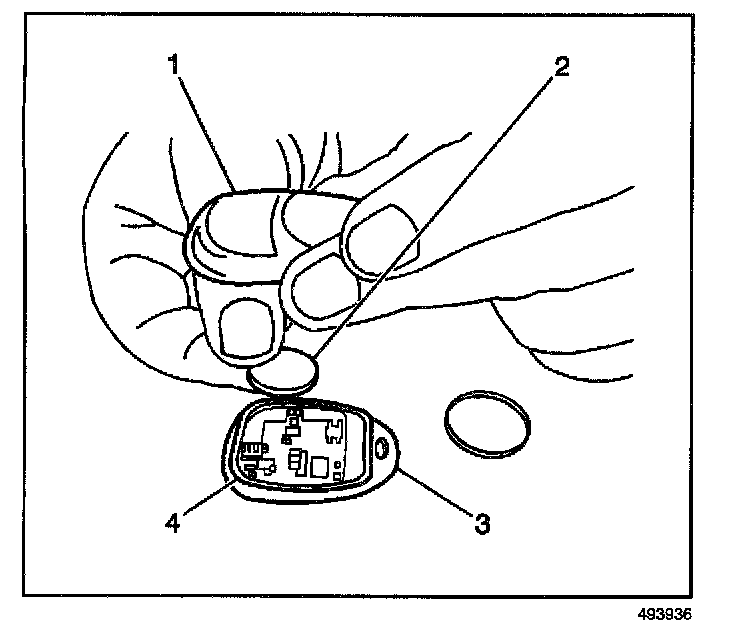 4. Verify that the remote control door lock receiver transmitter (3) is functioning correctly. If not, refer to Transmitter Programming. Transmitter Programming