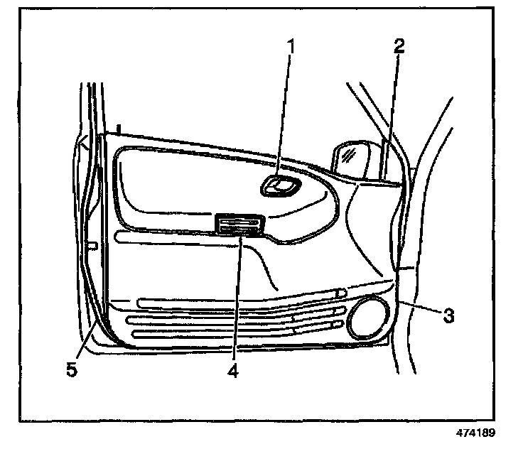 5. Position the door trim panel (3) away from the door in order to gain access to the right front side window switch electrical connector