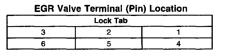 Use the above table in order to locate the correct terminals to test during diagnosis. The table layout corresponds to the pin location of the EGR valve electrical terminals.