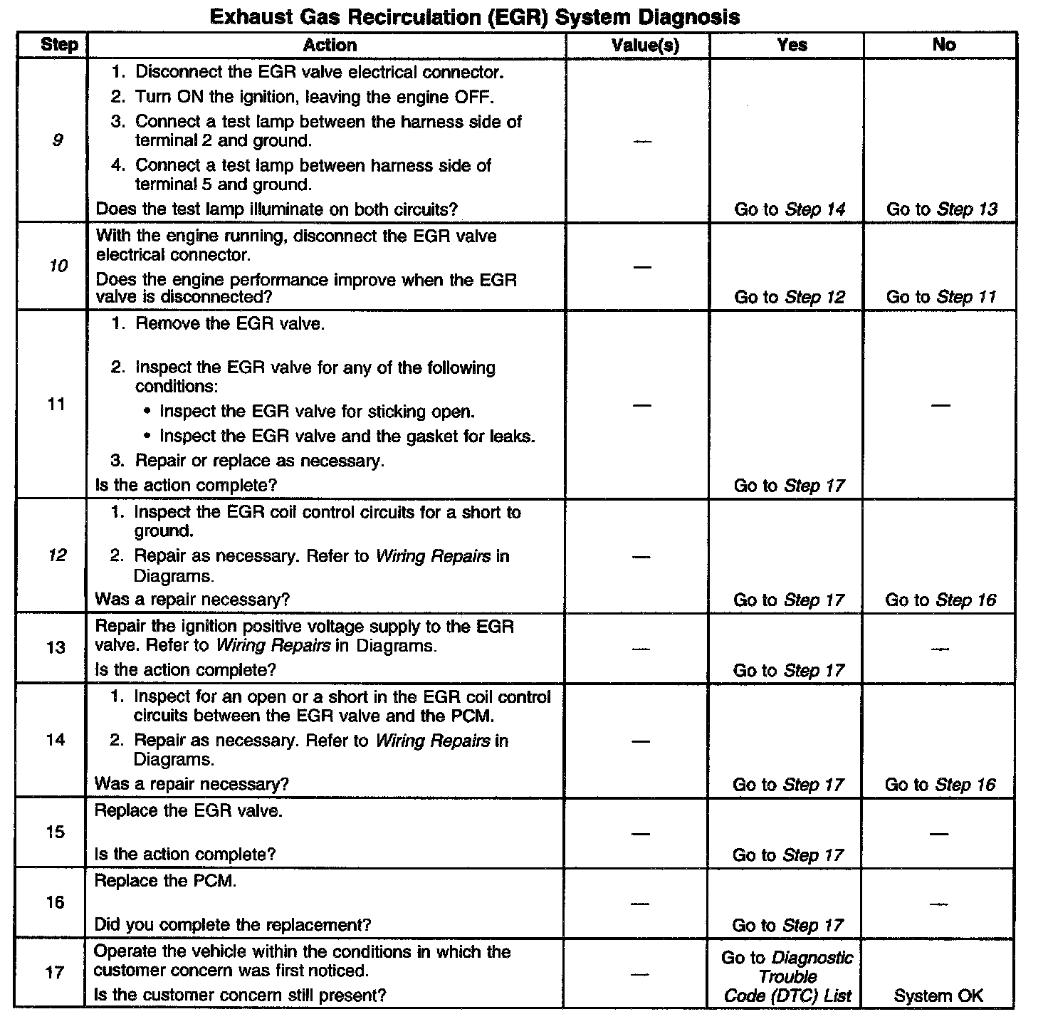 12. This step checks for an EGR valve control circuit that is shorted to ground. If the circuit wiring is OK, a faulty PCM with an internally shorted circuit can cause the EGR valve to be open.