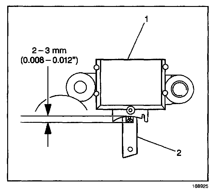 2. Install the brush springs and the brushes to the regulator so that the label on each brush is 2-3 mm (0.008-0.012 in) from the rectifier.