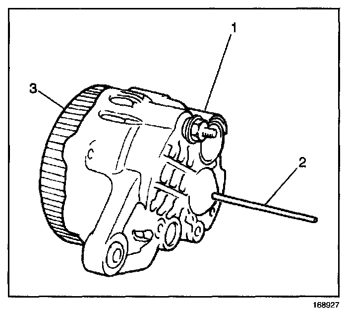 11. Support the brushes with a wire inserted through the hole in the rear housing (2).
