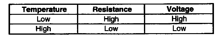 The Intake Air Temperature (IAT) sensor (1) is located in the air cleaner assembly (2). The IAT sensor is a thermistor (a variable resistor that changes value when the temperature changes). The IAT sensor is connected in series with a fixed resistor in the Powertrain Control Module (PCM). The PCM applies 5 volts to the IAT sensor. The PCM monitors the voltage drop across the IAT sensor and converts the voltage reading into a temperature value. The IAT sensor voltage reading at the PCM will vary with the changes in the intake air temperature.