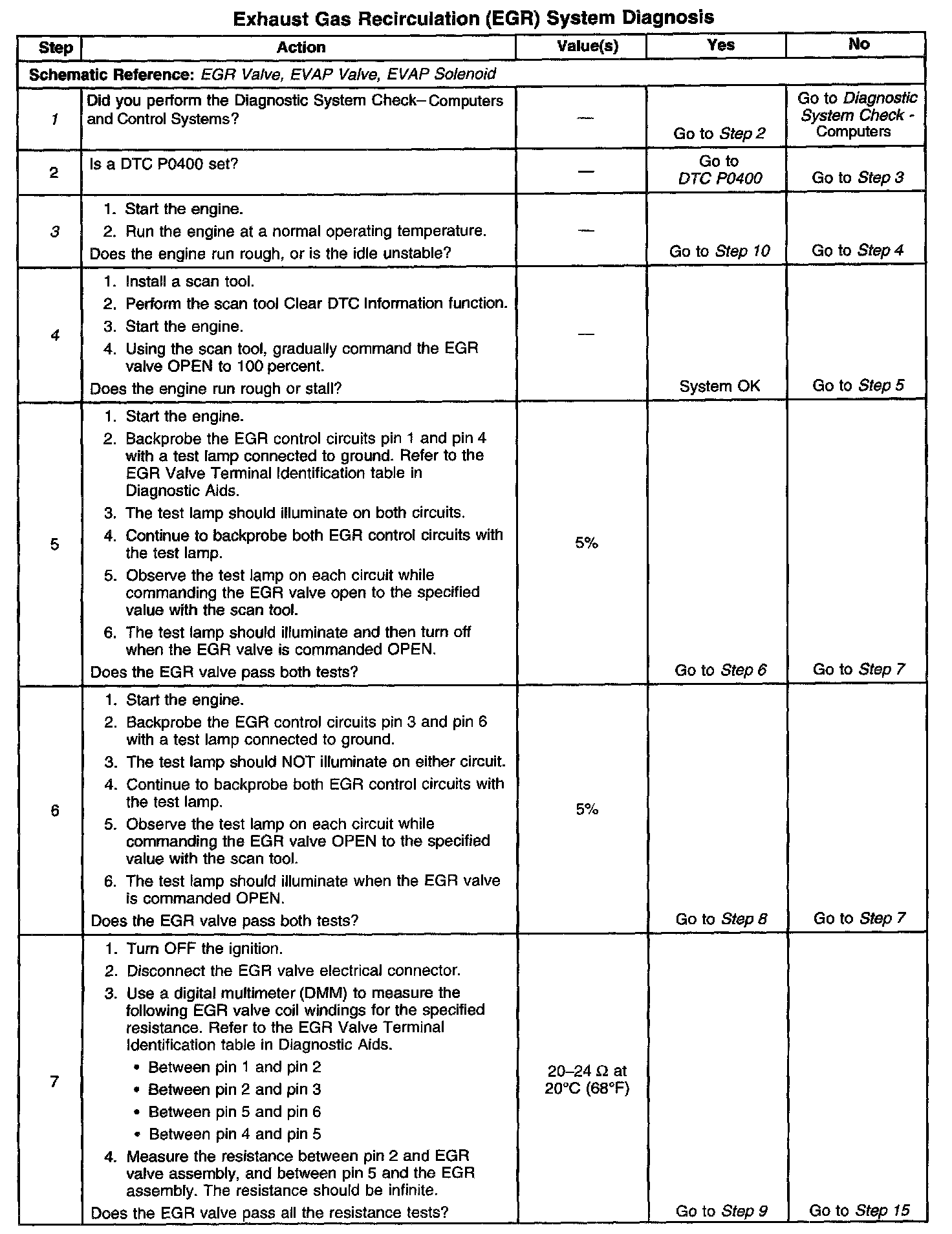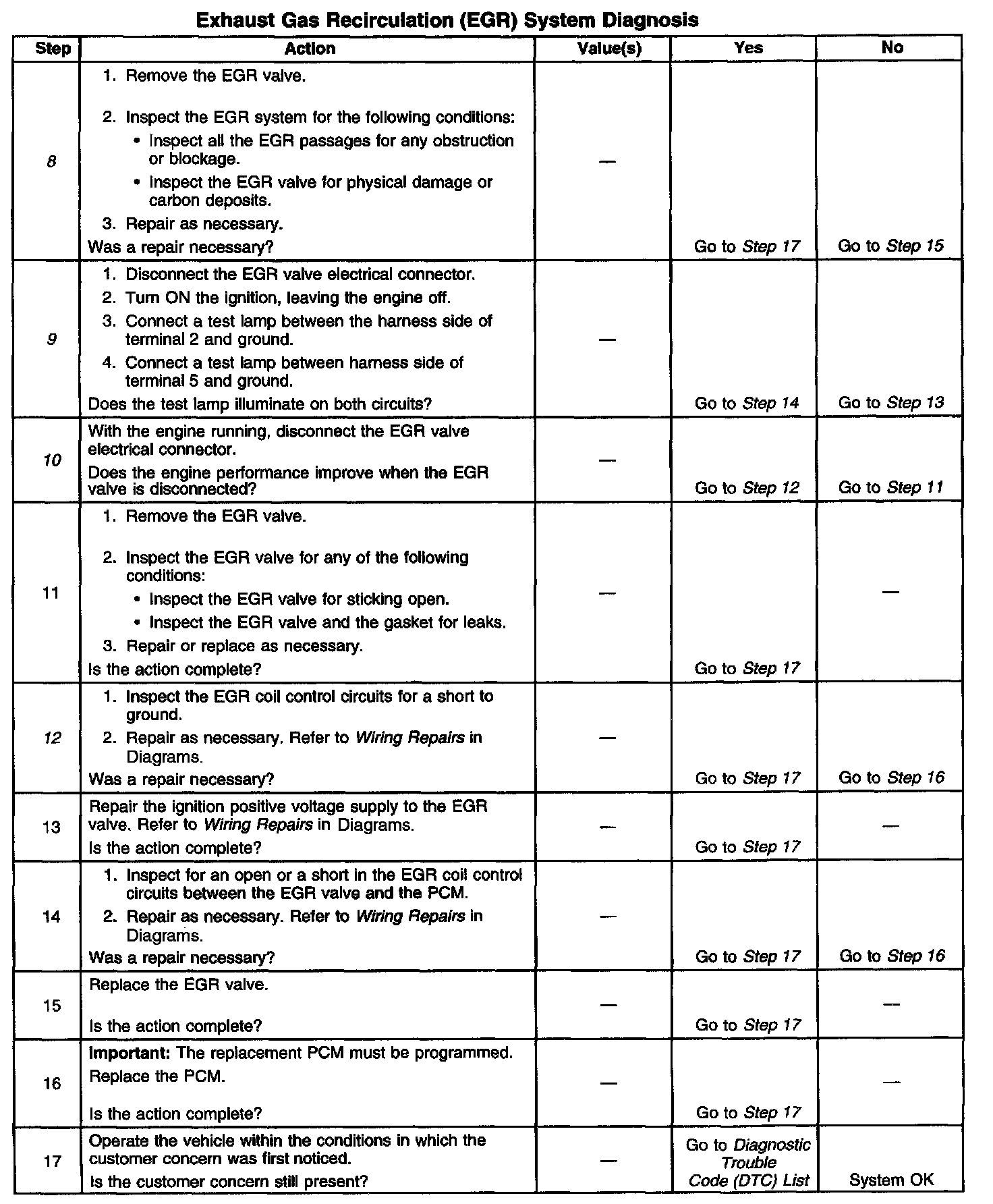 12. This step checks for an EGR valve control circuit that is shorted to ground. If the circuit wiring is OK, a faulty PCM with an internally shorted circuit can cause the EGR valve to be open.