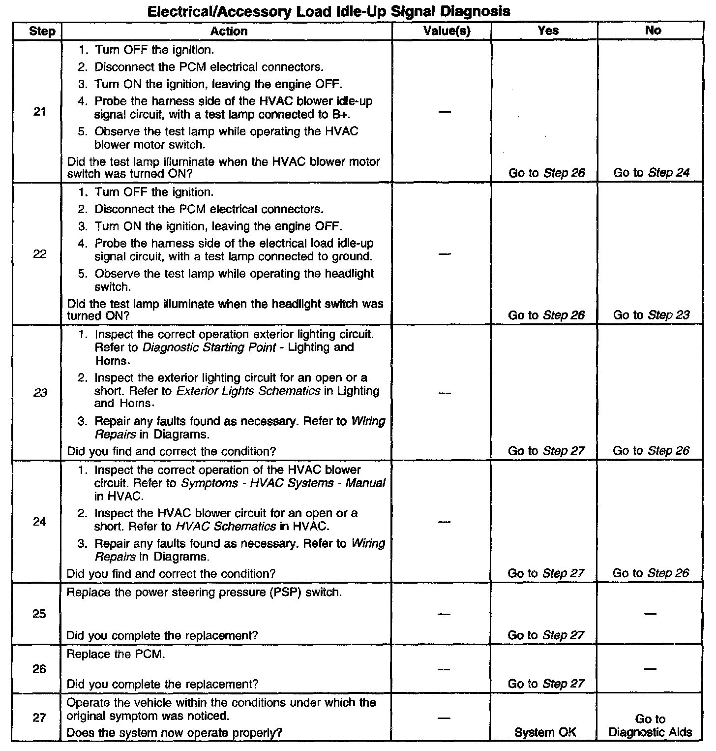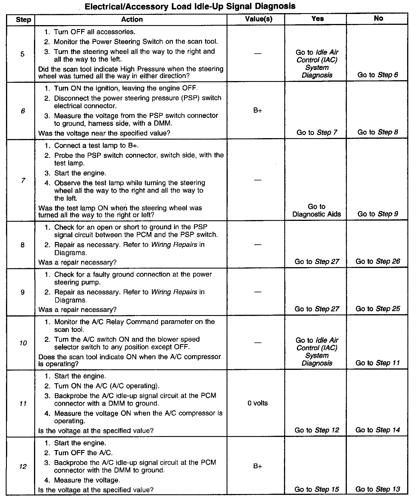 7. This step checks for an inadequate ground connection at the power steering pump or a faulty PSP switch.