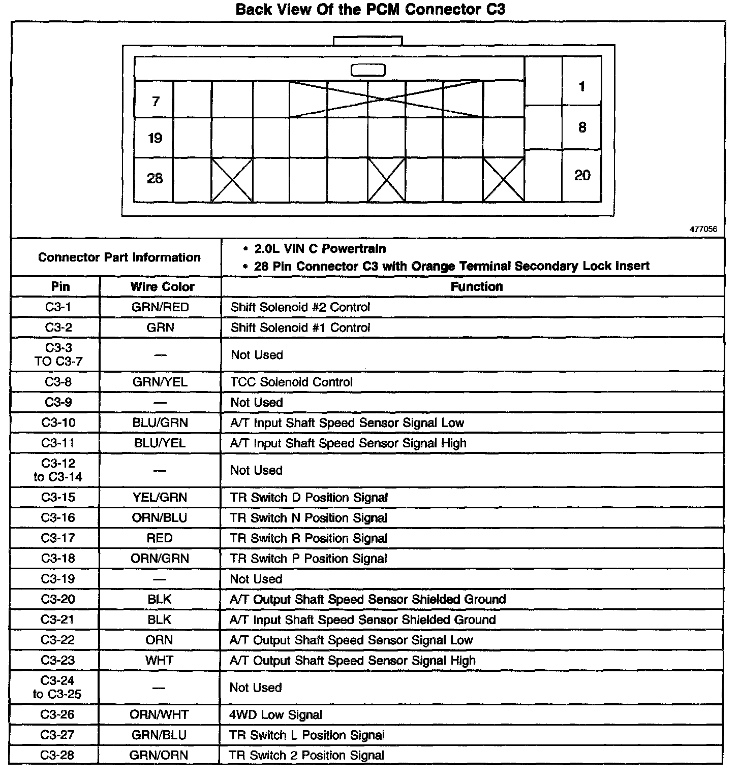Back View Of The PCM Connector C3: