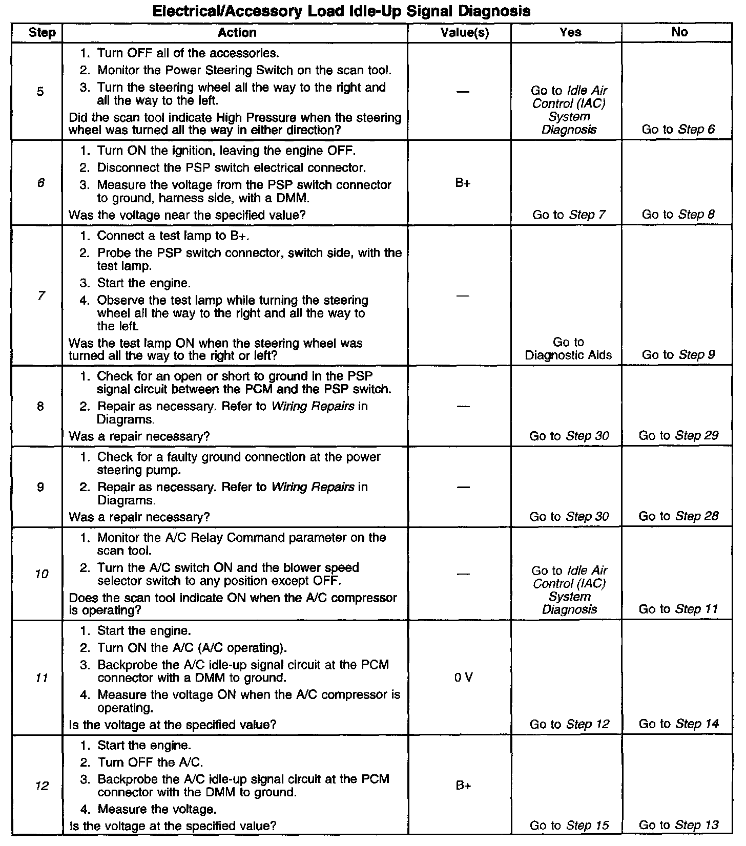 7. This step checks for an inadequate ground connection at the power steering pump or a faulty PSP switch.
