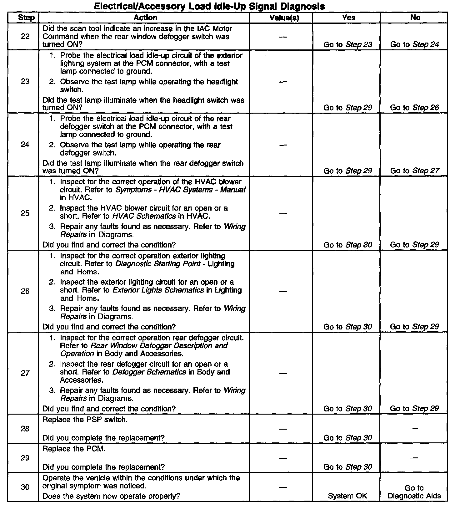 ELECTRICAL/ACCESSORY LOAD IDLE-UP SIGNAL DIAGNOSIS