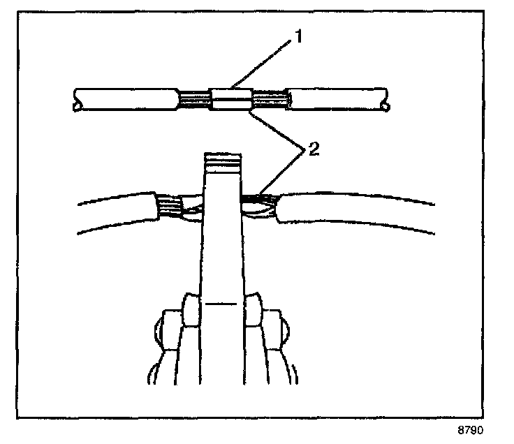 ^ Ensure that each splice is at least 40 mm (1.5 in) away from other splices, harness branches and connectors. This helps prevent moisture from bridging adjacent splices and causing damage.