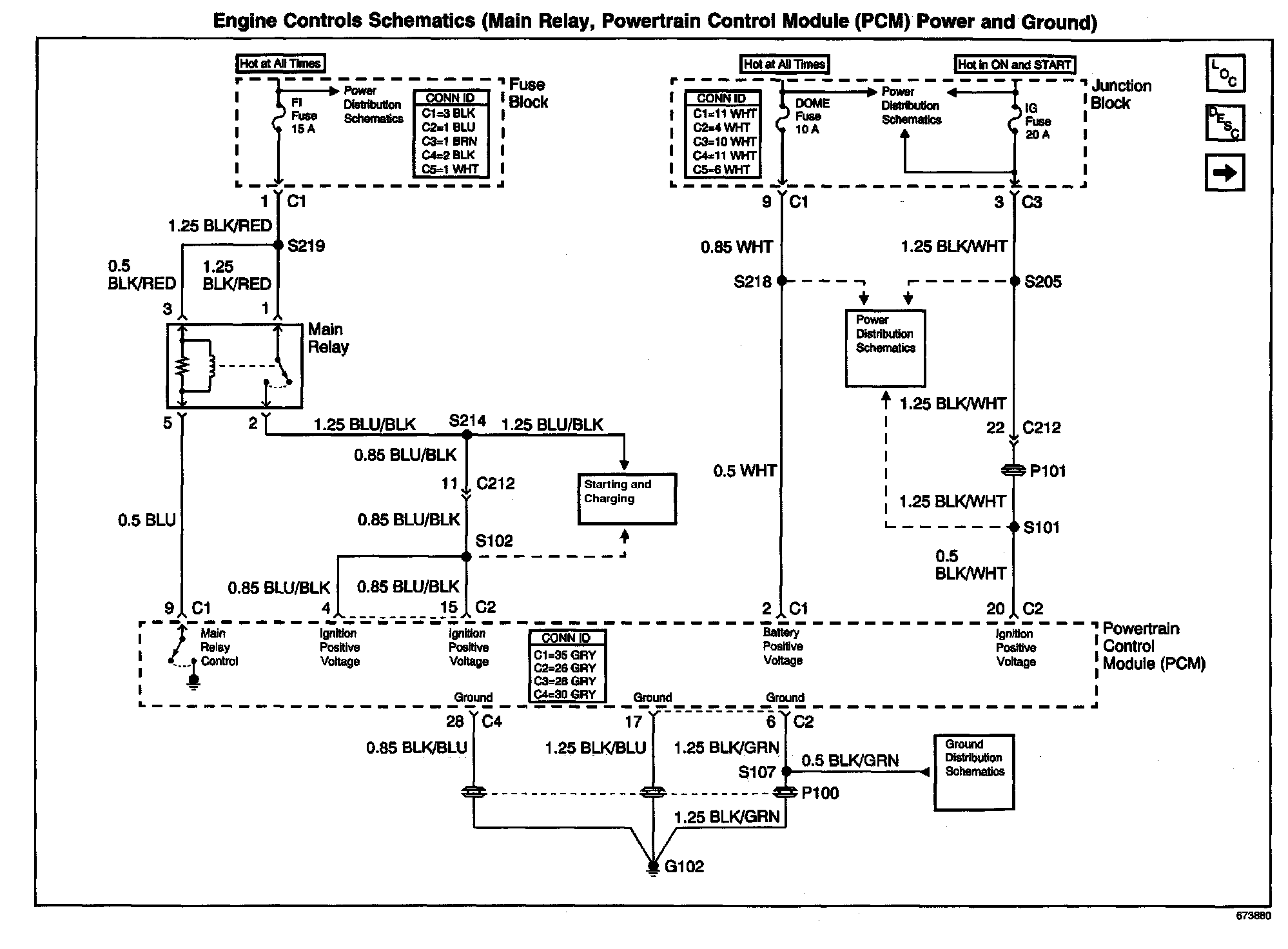 Engine Controls Schematics: Main Relay, Powertrain Control Module (PCM) Power and Ground: