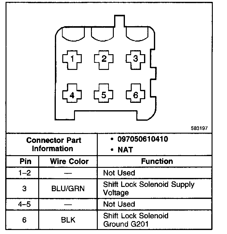 A/T Shift Lock Control Connector End Views
