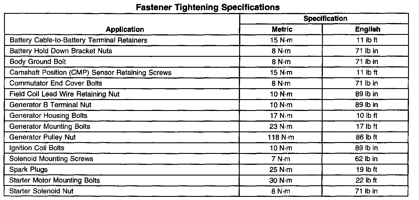 Fastener Tightening Specifications: