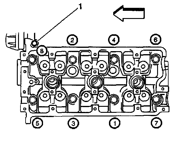 Tighten the cylinder head bolts (1-8) in the sequence shown to 53 Nm (38.5 ft. lbs.).