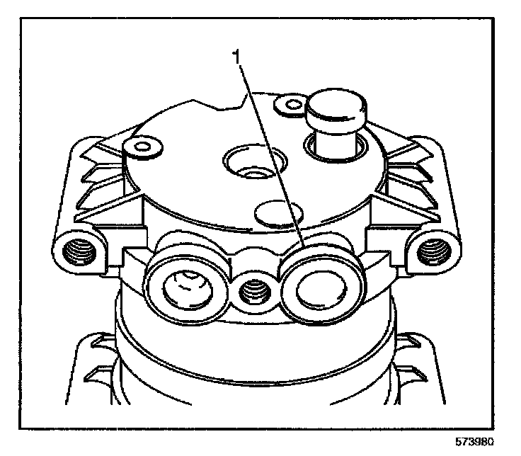 3. Remove the compressor hose assembly bolt (3) from the compressor.