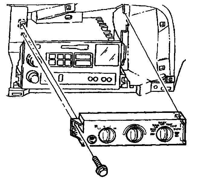 2. Remove the retaining screw from the left edge of the HVAC control assembly.