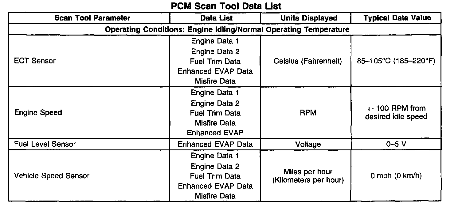 Scan Tool Data List - Powertrain Control Module (PCM)