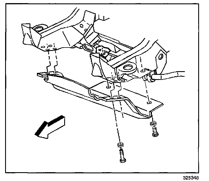 2. If the vehicle is equipped with the underbody shield package, then remove the steering linkage shield mounting bolts.