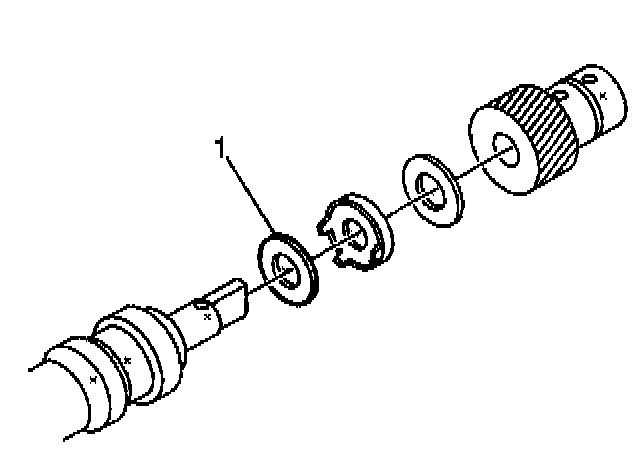 7. Install the shim washer (1) on the bottom of the distributor shaft.