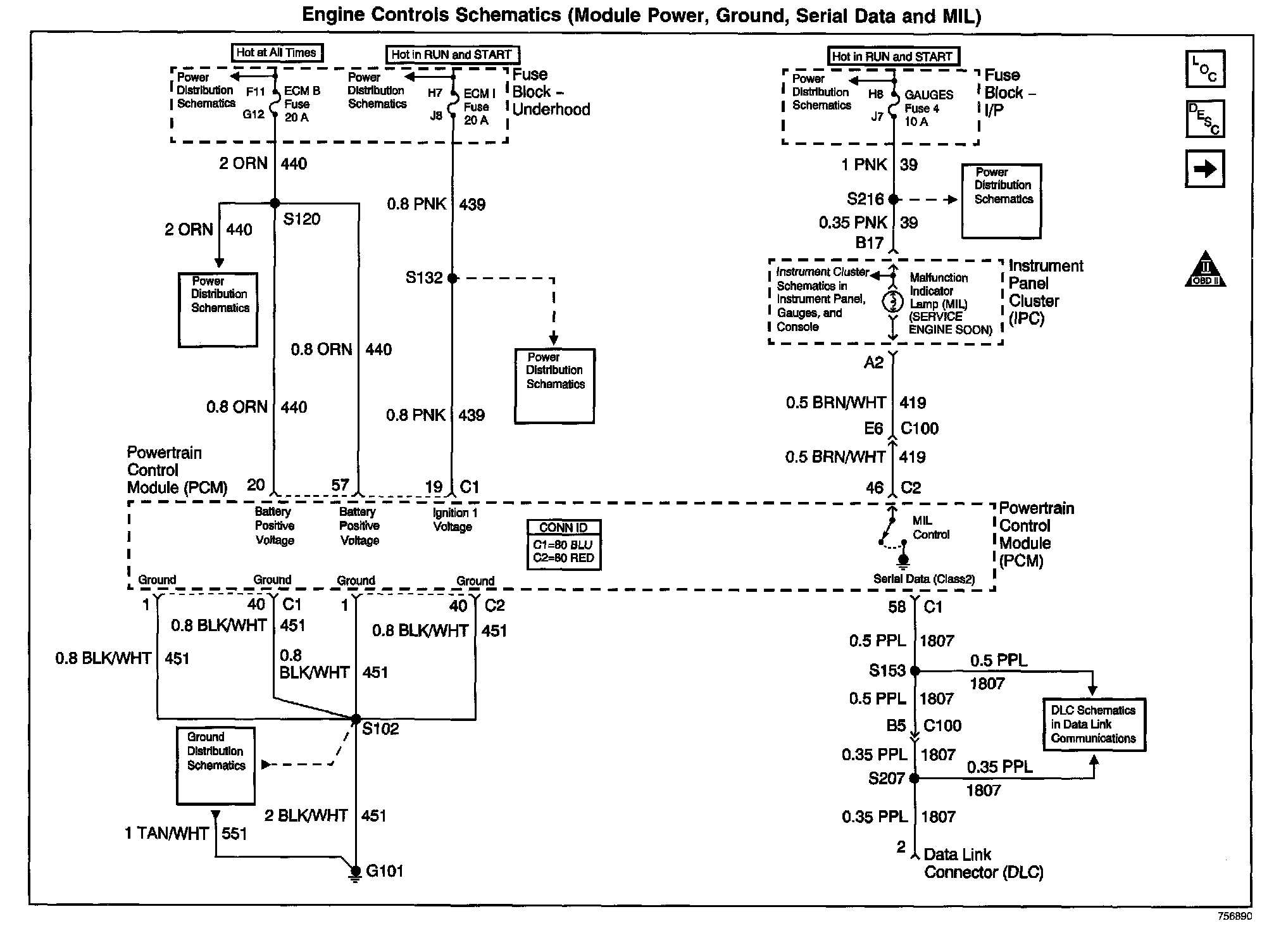 Engine Controls Schematics: Module Power, Ground, Serial Data And MIL: