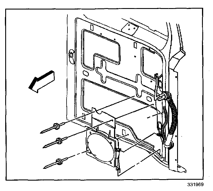 3. Install the rivets in order to retain the rear door speaker/housing to the door.