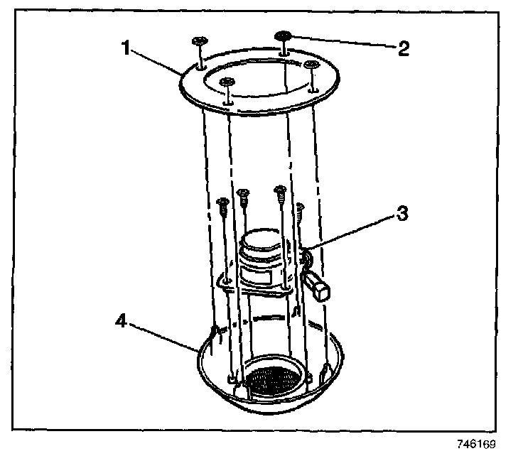 5. Remove the screws that are retaining the speaker (3) to the speaker grille.