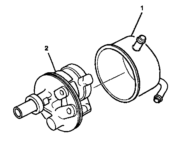 6. Remove the reservoir assembly (1) from the pump housing assembly (2).