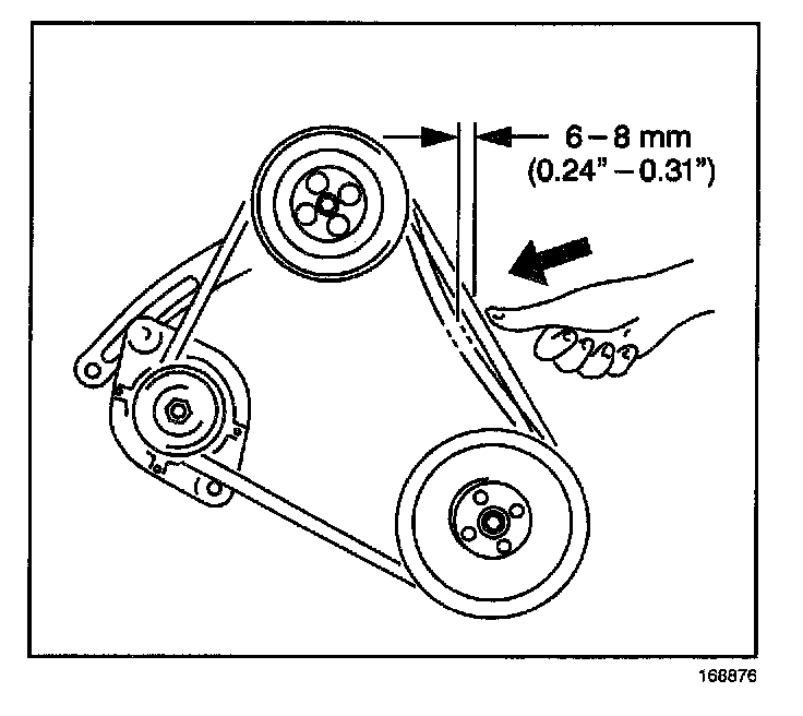 4. Adjust the drive belt tension to obtain the specified deflection with 10 kg (22 lbs) of force applied.