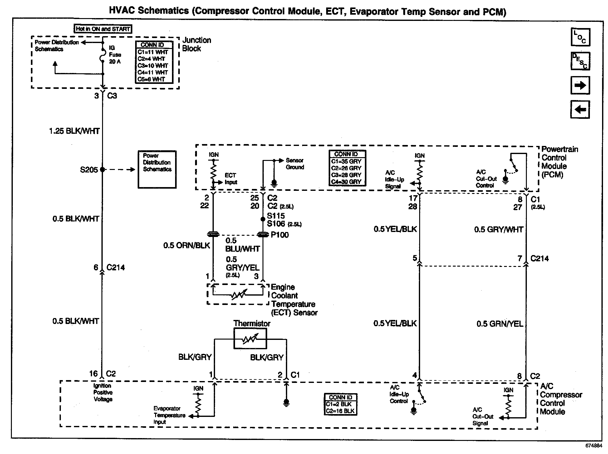 HVAC Schematics: Compressor Control Module, ECT, Evaporator Temp Sensor And PCM: