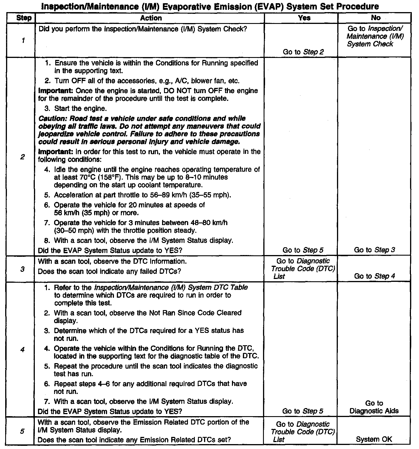 1. Make sure you perform the I/M System Check before performing this test. Failure to do so may result in difficulty updating the status to YES. Inspection/Maintenance (I/M) System Check