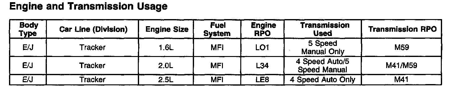 Tracker 2WD V6-2.5L VIN 4
