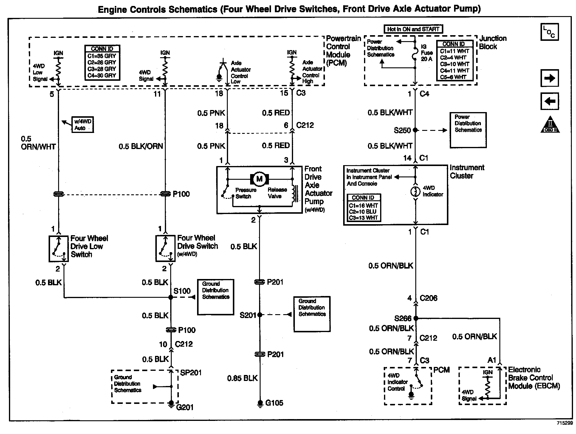 Engine Controls Schematics: Four Wheel Drive Switches, Front Drive Axle Actuator Pump: