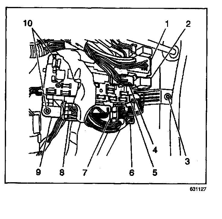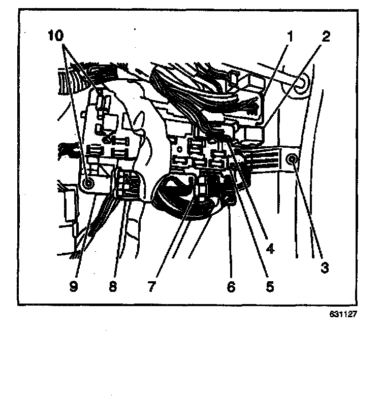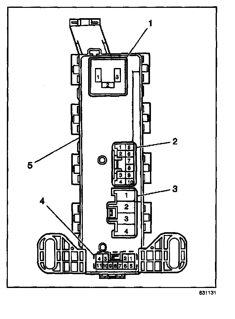 1. Install any fuses and relays that were removed from the front of the junction block (5)