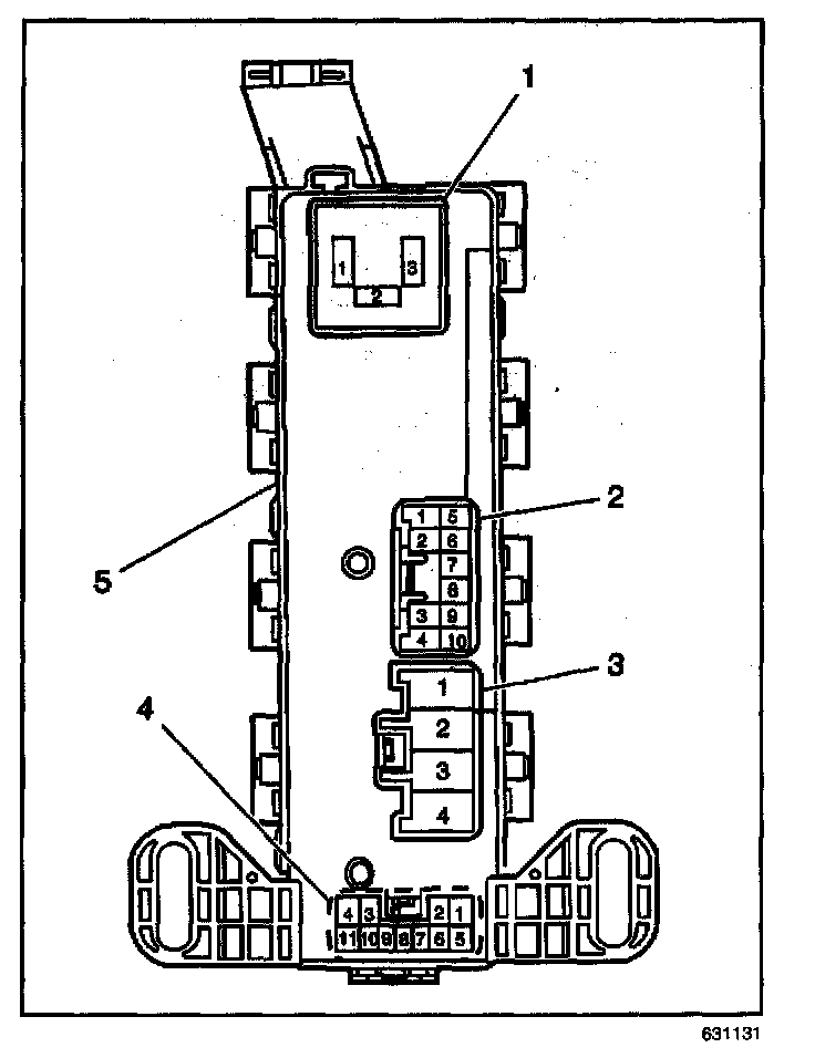 13. Remove the fuses and relays from the front of the junction block (5), as necessary.
