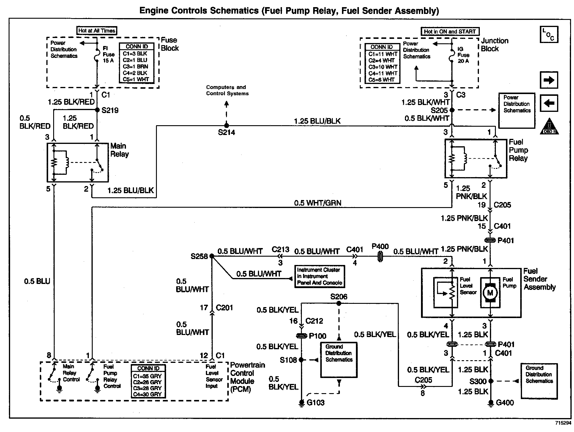 Engine Controls Schematics: Fuel Pump Relay, Fuel Sender Assembly: