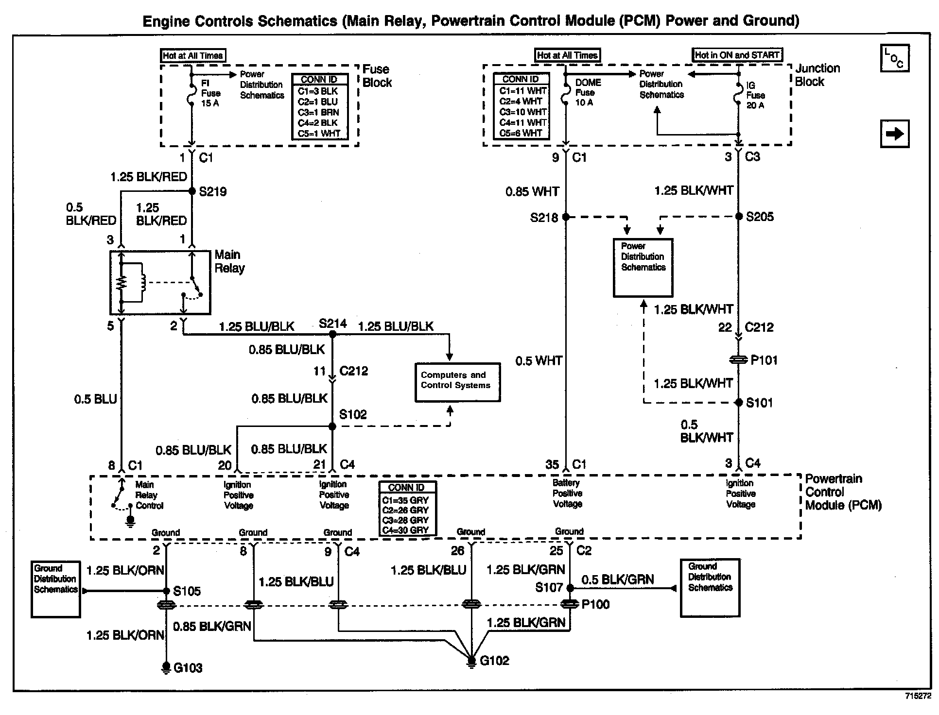 Engine Controls Schematics: Main Relay, Powertrain Control Module, (PCM) Power And Ground: