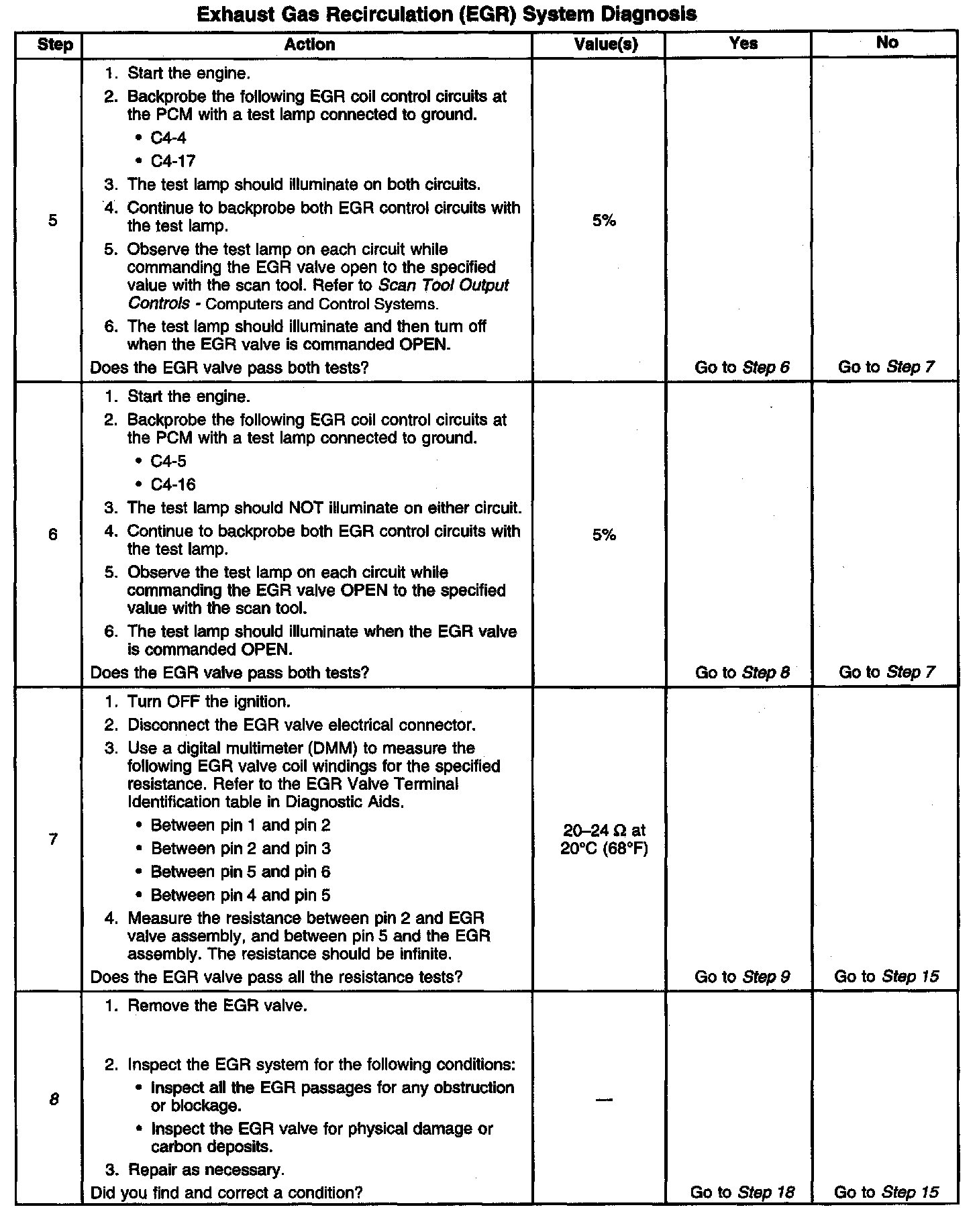 12. This step checks for an EGR valve control circuit that is shorted to ground. If the circuit wiring is OK, a faulty PCM with an internally shorted circuit can cause the EGR valve to be open.